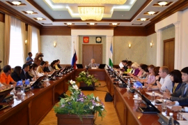 Участники фестиваля «Голос Евразии» познакомились с социальными проектами БашкортостанаУчастники фестиваля «Голос Евразии» познакомились с социальными проектами Башкортостана О реализуемых в регионе важнейших социальных проектах говорили на круглом столе в Правительстве Башкортостана. В мероприятии приняли участие журналисты филиалов ВГТРК, приехавшие на Всероссийский фестиваль национального вещания «Голос Евразии». Модератором мероприятия выступила заместитель Премьер-министра Правительства РБ Лилия Гумерова. Открывая круглый стол, вице-премьер передала журналистам приветствие Президента Башкортостана Рустэма Хамитова. Она представила положительный опыт республики в реализации нескольких важных социальных проектов. - Социальные проекты – одни из самых долгосрочных. Это золотой фонд не только с точки зрения средств массовой информации, но и культуры в целом, - сказала Лилия Гумерова. Она также отметила, что невозможно определенный проект навязать аудитории. Все самые лучшие идеи рождаются и выходят из народа. Особой темой круглого стола стали проекты, направленные на развитие активного долголетия среди пожилых людей республики. О примере туймазинских пожилых людей и деятельности Координационно–ресурсного центра для пенсионеров «Мои года – мое богатство», который успешно функционирует уже 5 лет, рассказала автор идеи - Гульнара Минигалеева. - Членами нашей организации сегодня являются более 200 пенсионеров. Мы не предлагаем нашим членам просто воспользоваться услугами, мы предлагаем им реализовать свой потенциал, - уточнила Гульнара Минигалеева. В названии нашей организации заложена идея о том, что пенсионеры – это не предмет заботы, а бесценный ресурс для общества и для самих себя. Для раскрытия этого ресурса, ему нужна только организационная поддержка и вера в собственные силы. Еще об одном проекте, получившем огромную популярность, - программе «Народный университет третьего возраста» рассказала министр труда и социальной защиты населения РБ Ленара Иванова. - Об успехе и востребованности проекта свидетельствует то, что пенсионеры, прошедшие обучение, продолжили начатое и создали свою региональную общественную организацию «Социальный центр «Народный университет третьего возраста» со своей программой обучения, - отметила министр. - Программа включает в себя изучение иностранных языков, семейной психологии, основ медицины и компьютерной грамотности. Участники программы постигают азы шитья, парикмахерского искусства и других ремесел, занимаются аэробикой и танцами. По окончании курсов выпускникам выдаются дипломы. Обучение проводят сами пенсионеры, преподаватели и студенты-волонтеры РГСУ. Ленара Иванова также рассказала участником фестиваля о том, что в июле текущего года в республике впервые прошел конкурс по компьютерному многоборью. Совместно с Минтрудом его организаторами выступили Социальный центр «Народный университет третьего возраста» и Уфимский филиал РГСУ. Участники состязания – это слушатели республиканской программы «Народный университет третьего возраста» из различных городов и районов Башкортостана. - Теперь два победителя республиканского конкурса примут участие в III Всероссийском чемпионате по компьютерной грамотности, который пройдет в г.Ульяновске 5 сентября 2013 