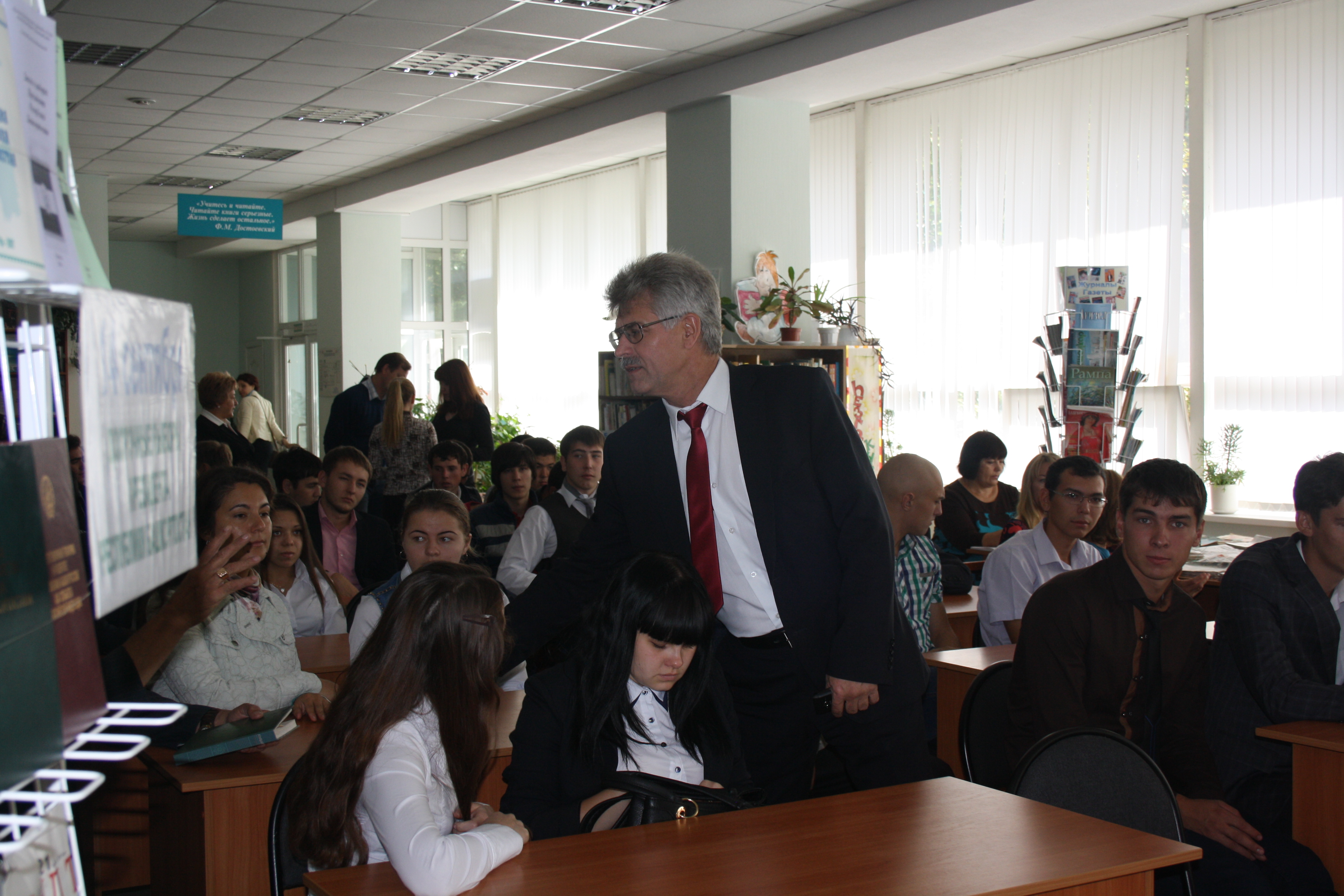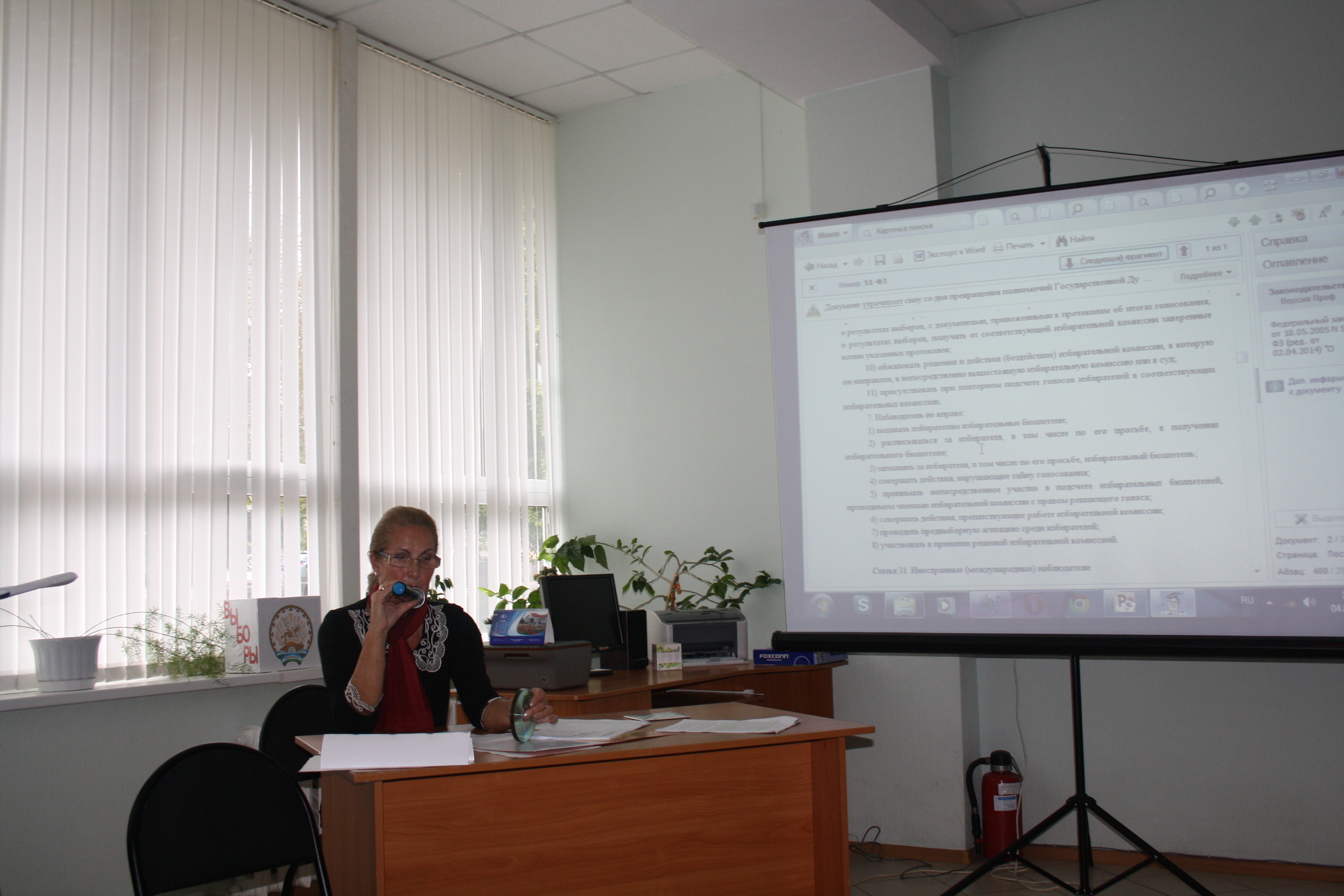 В рамках реализации проекта «Право на колесах», 4 сентября 2014 года департаментом по связям с общественностью Компании права «Респект» совместно с муниципальной центральной библиотекой МР Туймазинский район на базе муниципальной библиотеки № 4 г. Туймазы, по адресу ул.Чапаева, 12, была проведена встреча со студентами. Тема встречи «Выборы: Завтра начинается сегодня». На встрече также присутствовали представители политических партий, председатель территориальной избирательной комиссии МР Туймазинский район Алчинов М.Ш. и директор МАУК «МЦБ» МР Туймазинский район Шайдуллина А.К. В Программу встречи вошли: 1. Книжная выставка «Правильный выбор - общий успех»; 2. Стена гласности «Ты - гражданин. Ты - избиратель»; 3. Тренинг – игра «Вы пришли на избирательный участок». Во время встречи специалисты Компании права «Респект» ознакомили участников с рядом важных моментов по законодательству о выборах, в частности, научным определением выборов как необходимого элемента народовластия и механизма реализации конституционных прав граждан, основными принципами выборов и др. Участникам встречи, а также членам избирательной комиссии были розданы диски с пакетом нормативных правовых актов законодательства о выборах. Члены избирательной комиссии отметили то, какую неоценимую помощь в работе они «черпают» в СПС «КонсультантПлюс». Было также приятно слышать благодарственные слова работников библиотек в адрес специалистов по информационному сопровождению Октябрьского филиала Компании права «Респект» по своевременному пополнению, регулярному сопровождению библиотек и обучению новых сотрудников библиотек при необходимости. Мы ознакомились с деятельностью открытого еще в 2012 году одного из первых в Башкортостане «Туймазинского Библиобуса». В районе функционируют 47 стационарных библиотек, а населенных пунктов 113, поэтому большая часть населения раньше имела несколько ограниченный доступ к библиотечным услугам, информационным правовым знаниям. А с началом функционирования «Библиобуса» появился новый социальный коммуникативный формат жизни местного сообщества, что позволяет охватить максимальное число сельских жителей через Проект «Право на колесах». Данная встреча стала еще одним подтверждением, что Соглашение «О взаимодействии Министерства культуры Республики Башкортостан и ООО Компания права «Респект» в реализации Программы информационной поддержки российских библиотек в Республике Башкортостан» реализуется успешно! Департамент по связям с общественностью ООО Компания права «Респект»