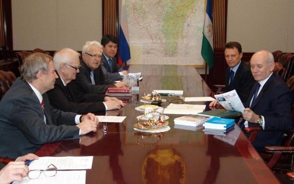 Рустэм Хамитов встретился с членами Российского философского обществаРустэм Хамитов встретился с членами Российского философского общества 22 апреля в Москве Президент Башкортостана Рустэм Хамитов провел встречу с руководителем Российского философского общества (РФО) Вячеславом Стёпиным, первым вице-президентом РФО Александром Чумаковым, вице-президентом РФО Абдусаламом Гусейновым, главным ученым секретарем РФО Андреем Королёвым. Обсуждались вопросы проведения в Уфе в сентябре-октябре 2015 года VII Российского философского конгресса «Философия. Толерантность. Глобализация. Восток и Запад – диалог мировоззрений». Предполагается, что Конгресс пройдет на базе Башкирского государственного университета, в составе которого – факультет философии и социологии, где успешно работает большинство членов Башкирского отделения философского общества РАН. Ожидается приезд 1500 участников из России и из ближнего зарубежья, около 50 из дальнего зарубежья. Тема форума подчеркивает преемственность исторических традиций дружбы и согласия на земле Башкортостана и уникальность географического положения региона, находящегося на границе между Европой и Азией, объединяя менталитет Запада и Востока. – Мы сделаем все, чтобы философский конгресс прошёл хорошо. Это событие будет проходить в Уфе как раз после заседания Совета глав государств – членов Шанхайской организации сотрудничества и встречи глав государств и правительств БРИКС. У нас будут подготовлены современные отели, хорошие выставочные и переговорные площадки, конференц-залы, – сказал Рустэм Хамитов. Предыдущие конгрессы проводились в Санкт-Петербурге (1997), Екатеринбурге (1999), Ростове-на Дону (2002), Москве (2005), Новосибирске (2009) и Нижнем Новгороде (2012). Справка: Башкирское отделение РФО создано в 1982 году и объединяет около 300 членов, в том числе 54 доктора философских наук, более 200 кандидатов философских наук. Башкирское отделение РФО по научному потенциалу, активности работы и численности является третьим в РФ, после философских обществ Москвы и Санкт-Петербурга, а по сути – первым среди субъектов РФ. Источник: сайт Президента РБ. |