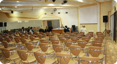 Уникальность нашего предложения в том, что в наших залах мебель можно расставить по Вашему усмотрению и вкусу, залы оборудованы проекторами, экранами, специальными досками с маркерами, кондиционерами, есть доступ к wi-fi. Имеется гардероб. Комфортные санузлы со всем необходимым. В коридорах стоят кулеры с холодной и горячей водой. Имеется столовая, где можно заказать все для кофе-пауз и обеда.